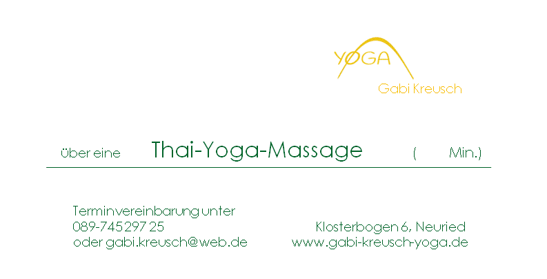 TYM Geschenkgutschein Ein Gutschein kann wahlweise für 60 oder 90 Minuten ausgestellt werden. Gutschein bestellen